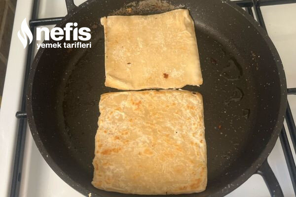 - Milföyleri tavaya diziyoruz, gerisi kızardıktan sonra ortasını açıp kaşarları koyuyoruz.