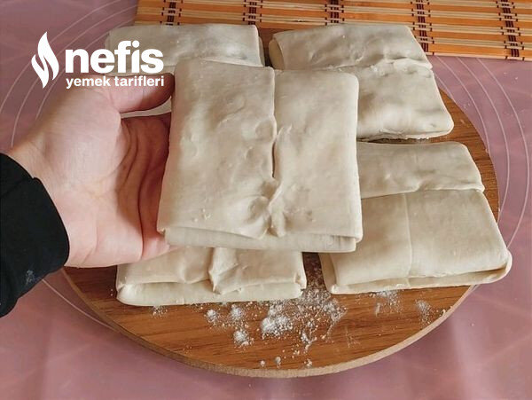 - Artı formunda üst üste bırakalım ortasına iç harcını dolduralım evvel kenarları katlayıp sıkıca kapatalım daha sonra öteki kanatları katlayıp kapatalım.