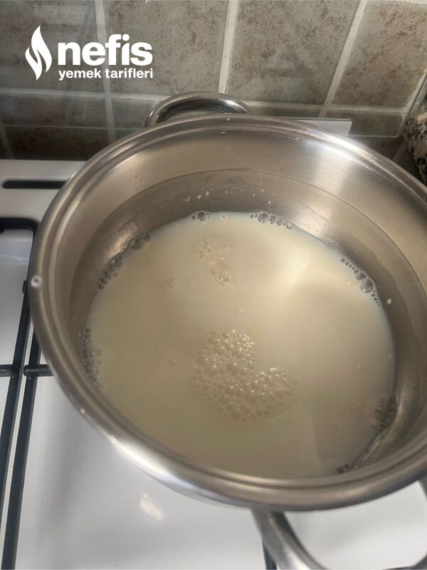 - Muhallebesi için tencereye süt ,şeker ve unu ekleyip kıvam alana kadar pişirelim ,topaklanma olmaması için daima karıştıralım.