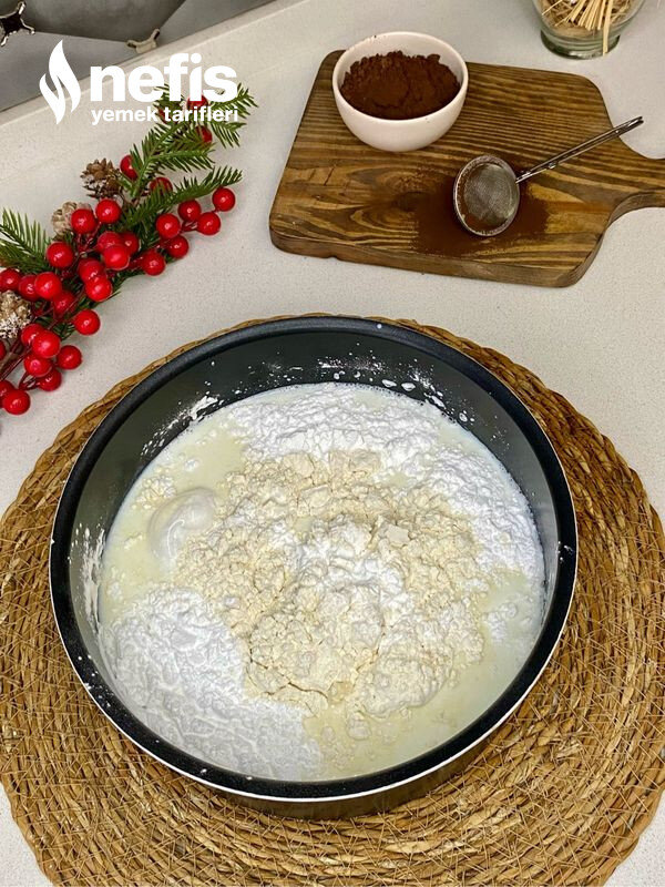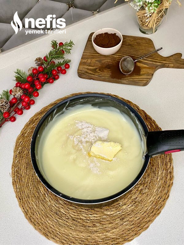 - Süt,şeker,yumurta,nişasta ve unu tencereye alıp güzelce karıştırarak pişiriyoruz.