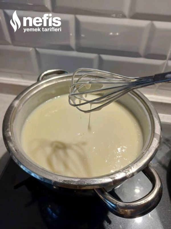 - Muhallebi için; Tencereye vanilya ve krema hariç tüm gereçleri alalım daima karıştırarak yoğunlaşıncaya kadar pişirelim.