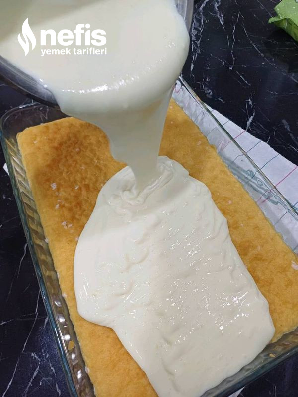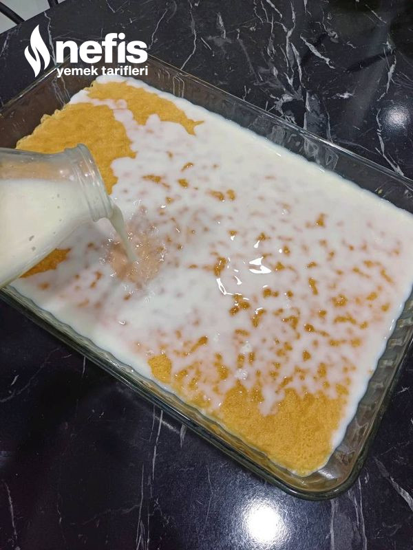 - Soğuk süt şerbetini kekin her tarafını ıslayacak biçimde dökelim.