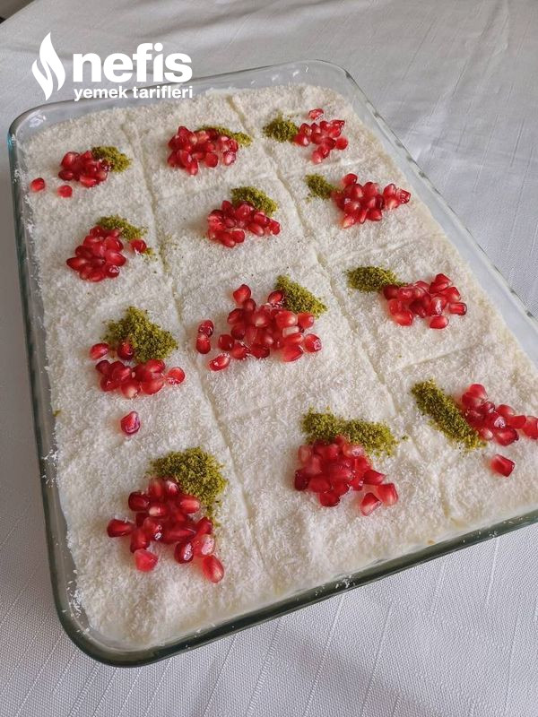 - İyice dinlenen pastamızın üzerine hindistan cevizi serpelim. Dilediğimiz üzere süsleyelim.
