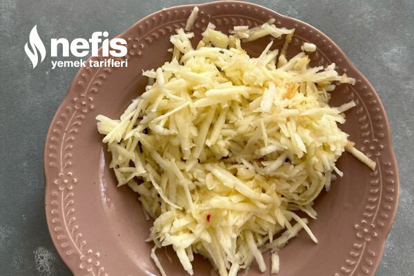 - Haşlanan pancarları ve yeşil elmaları rendeleyin.