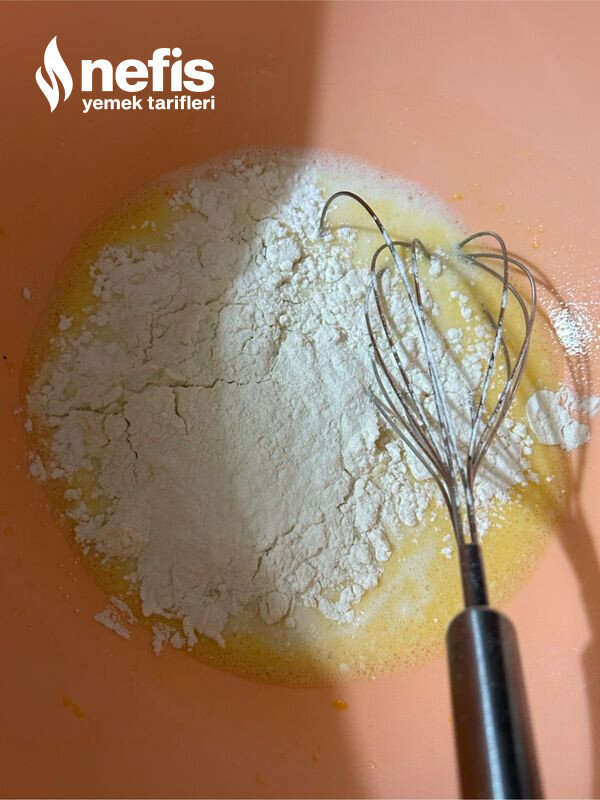 - Süt, un, kabartma tozu vanilya ile uygunca karıştırılır.