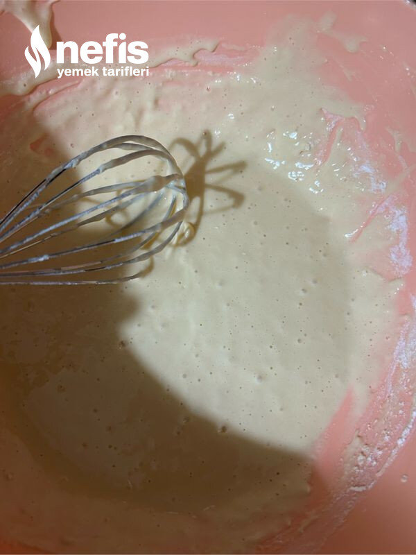 - 1 büyük kaşık hamur dökülerek hamurun yayılmasını bekleyelim.
