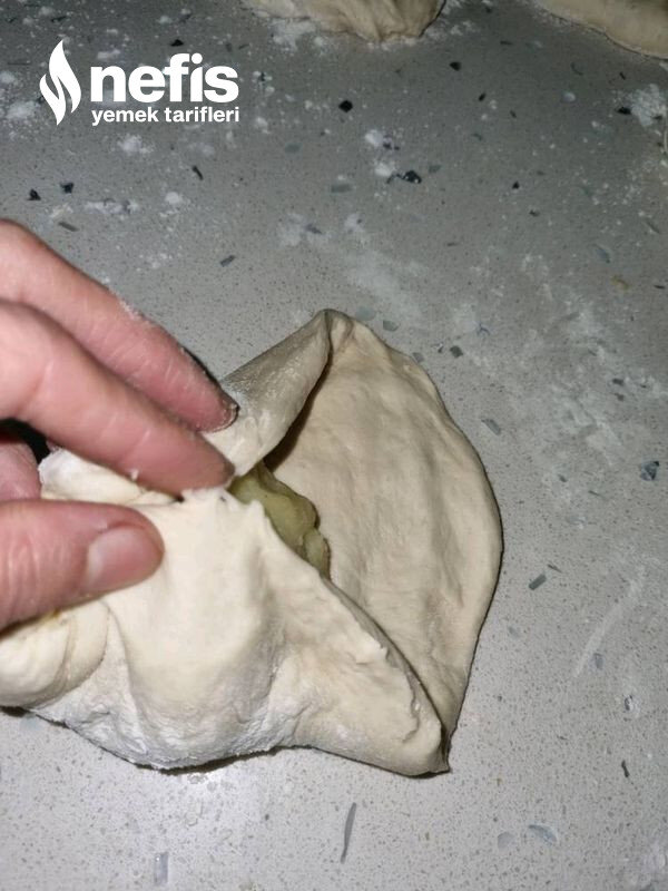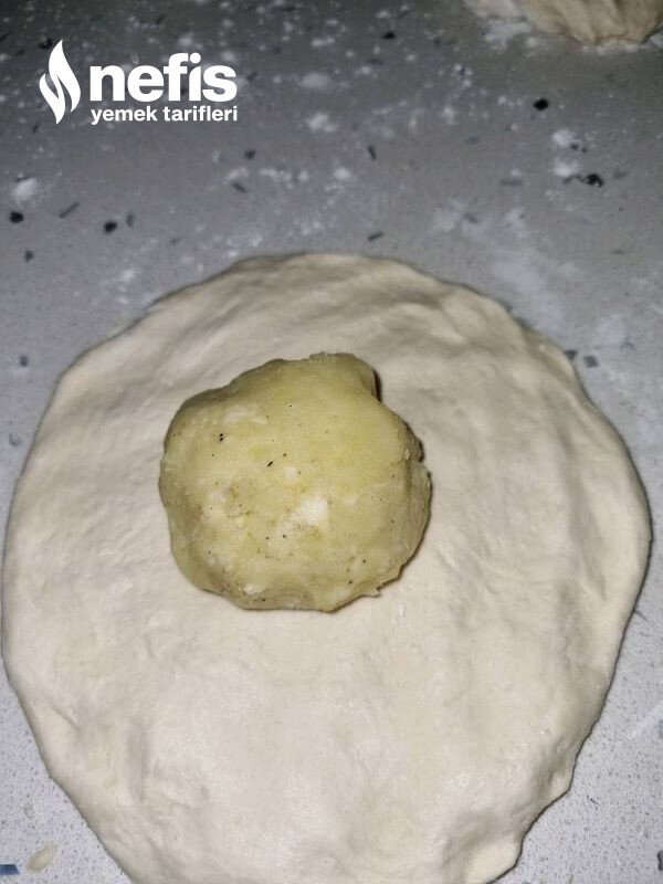 - Hamuru patatesten biraz büyük bezeler yapalım ,merdaneyle biraz açalım, içine patatesleri koyup kapatalım ve yuvarlak biçimde açalım.