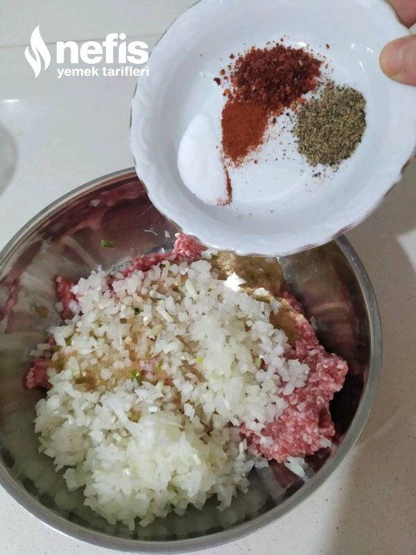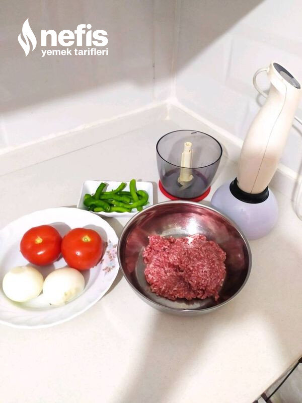 - Bu ortada iç harcını hazırlayalım soğanı domates biber maydanoz u robottan çekip kıymanın üzerine koyup baharatları tuzu da ek edip karıştıralım.