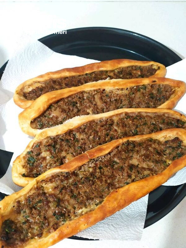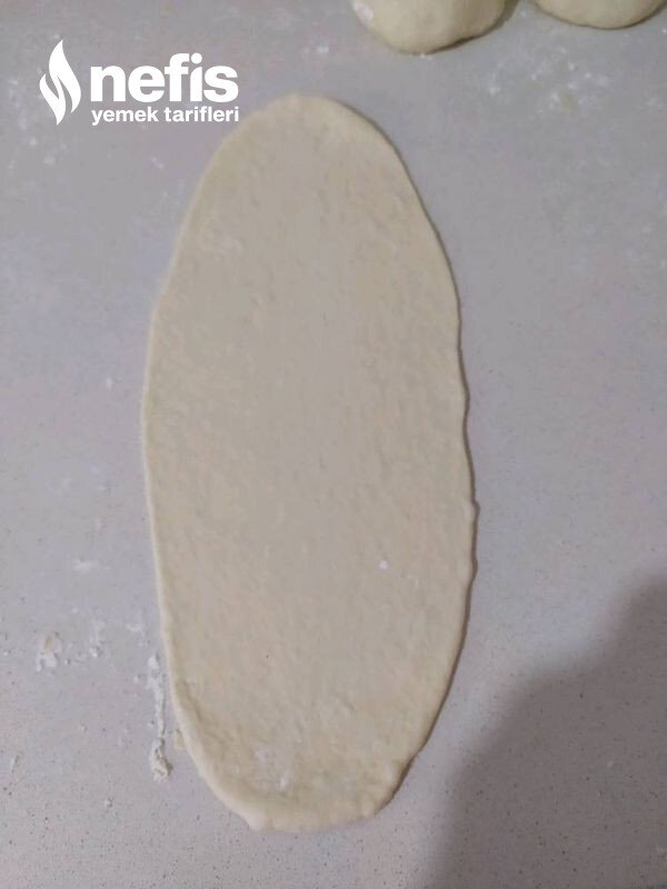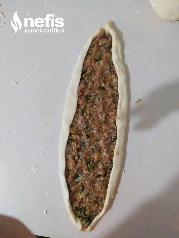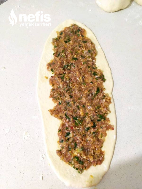 - Üzerine iç harcını koyup güzelce her tarafına bu harcı kenarları az boş kalacak halde yayalım ve kenarlarını içi yanlışsız kıvırıp pide hali verelim.