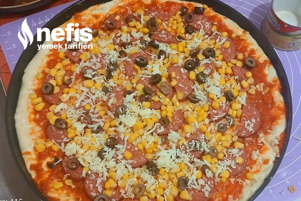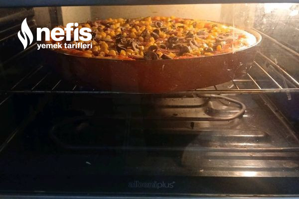 - Pizzanın tabanına hazırladığımız sostan sürelim, üzerine biraz peynir koyup dilediğimiz materyalleri koyalım.