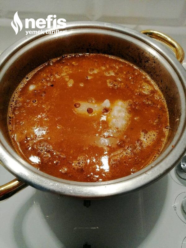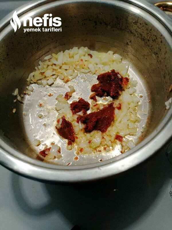 - Soğanlar küp küp doğranarak başka bir tencerede sotelenir, sotelenen soğanların üzerine salça eklenerek salçanın kokusu çıkması sağlanır.