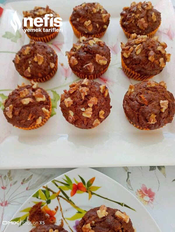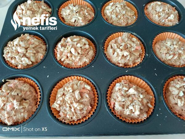 - Muffin kaplarına paylaştırıp üzerlerine ceviz koyalım.