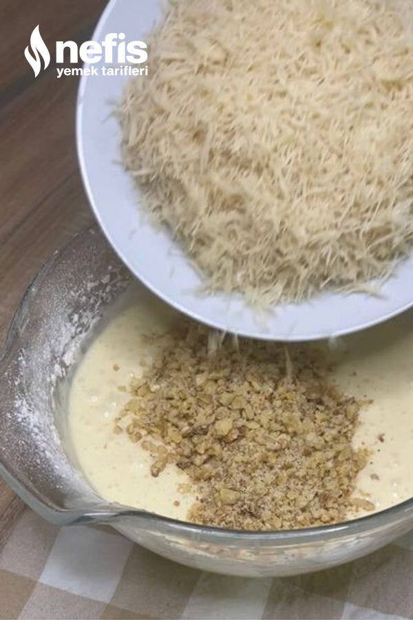 - Son olarak ceviz ve küçük küçük doğramış olduğunuz kadayıfı boşaltıp bir silikon spatula yardımıyla yeterlice karıştırın .