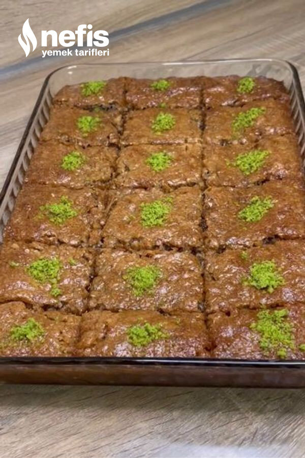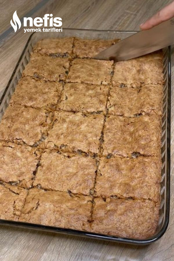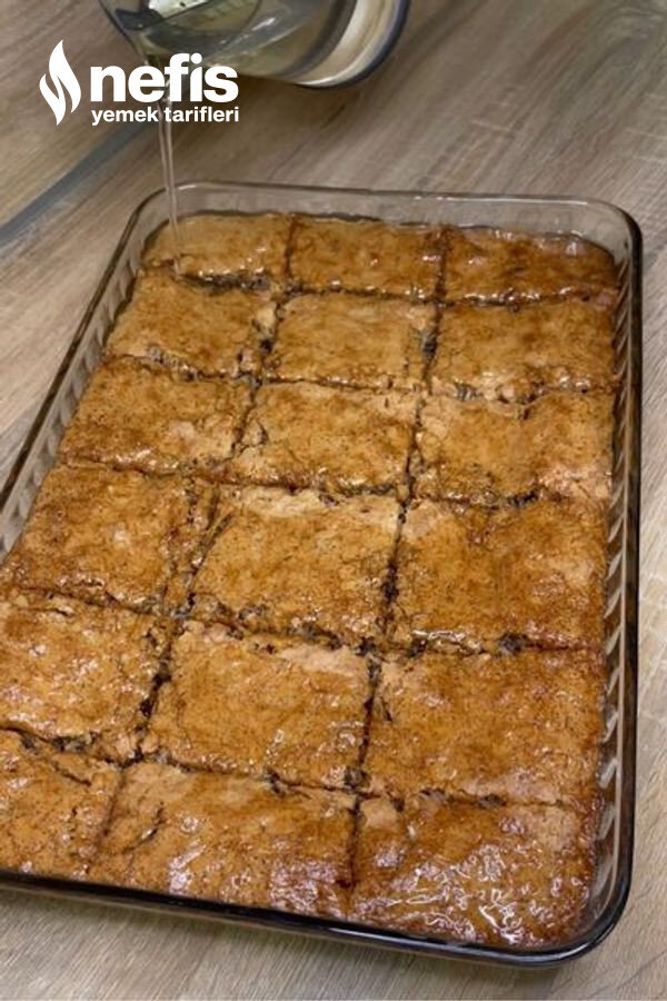 - Piştikten sonra fırından alın birinci sıcağı çıkınca bıçakla dilimleyin üzerine soğumuş olan şerbeti güzelce her yerine dökün (tatlı ılık şerbet soğuk olacak )