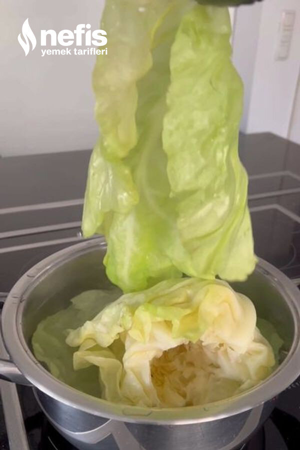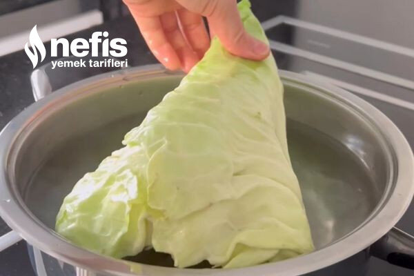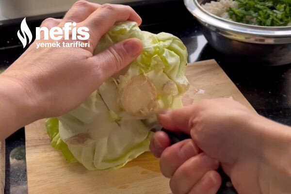 - Lahananın sap kısmını çıkarıp kaynayan suya ekleyin.