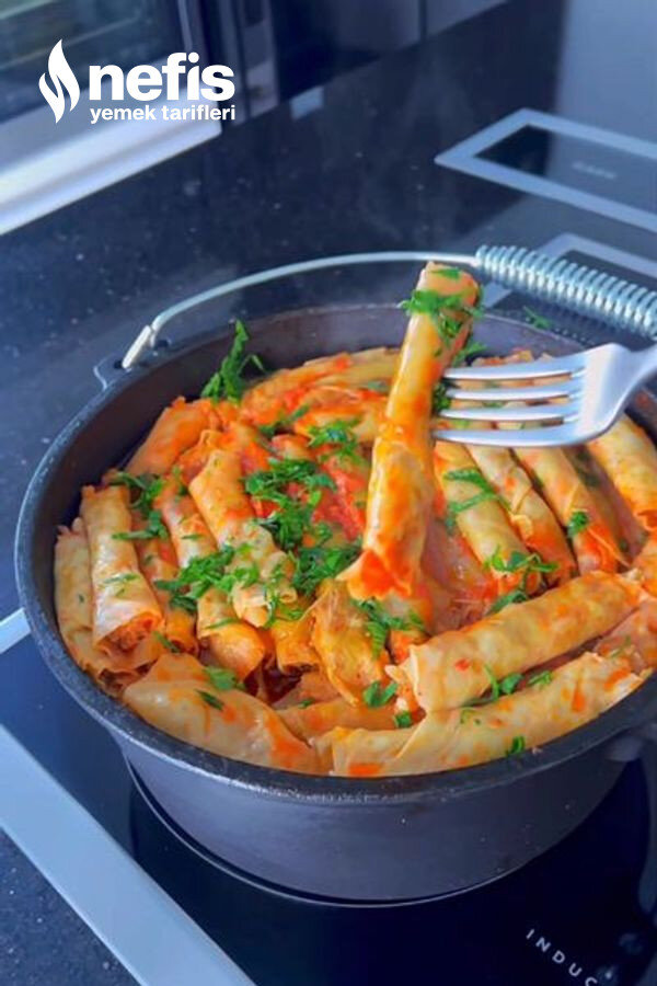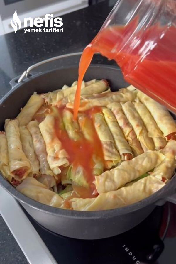 - Sıvıyı sarmaların üzerine dökün.
