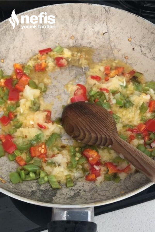 - Biberleri ince ince doğrayıp rendelediğimiz soğanla birlikte yağa atıyoruz .