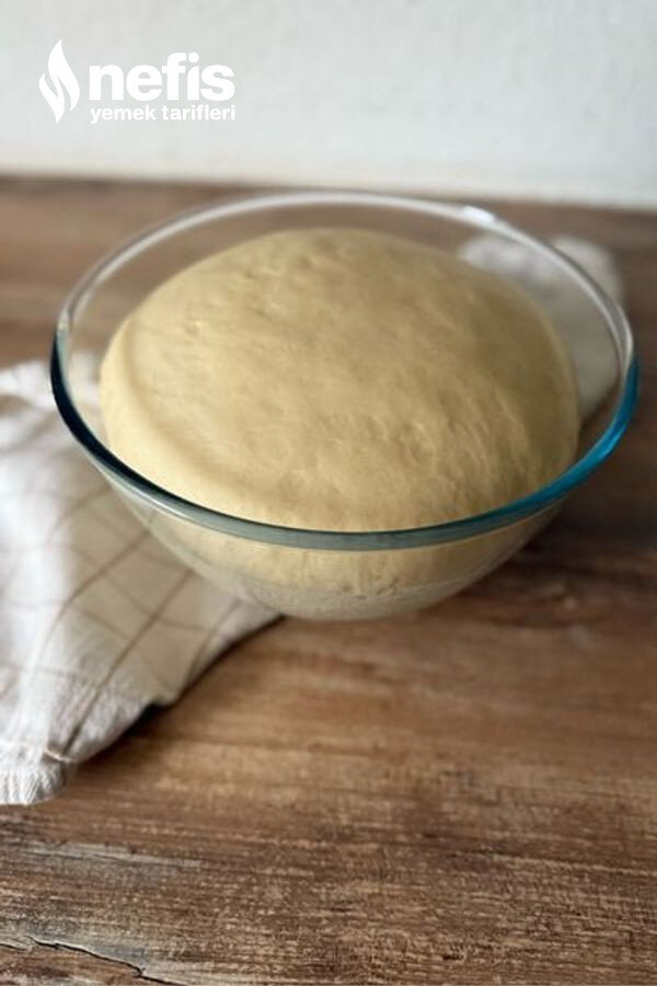 - Üzerini pak bir mutfak bezinle örtün ve hamuru ılık bir yerde hacmi iki katına çıkana kadar 1 saat mayalanmaya bırakın.