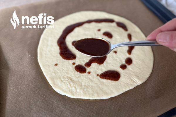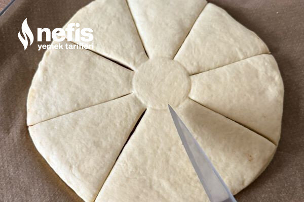 - Açtığınız hamurlardan birincisini yağlı kağıt serilmiş fırın tepsinize alın.
