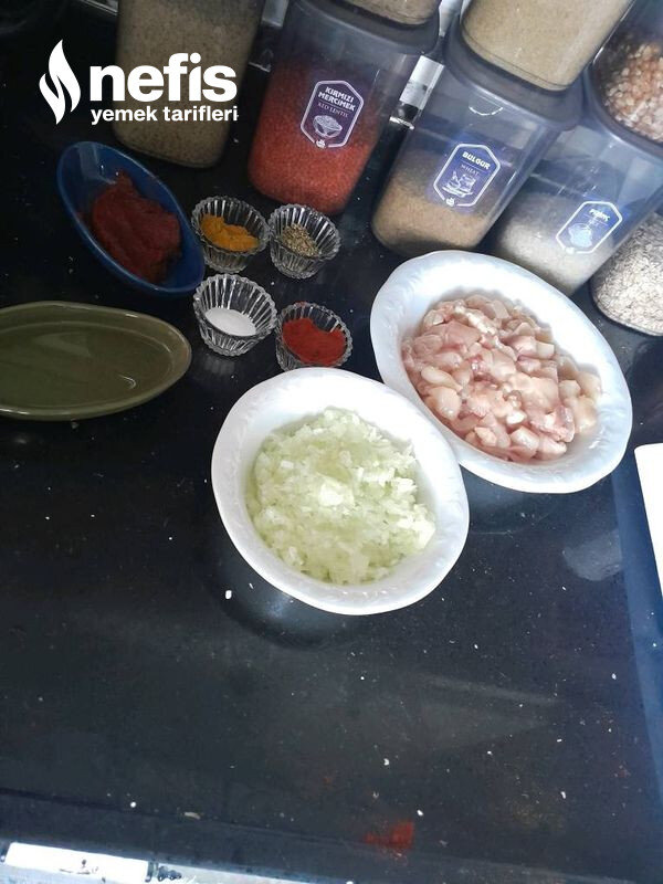 - İlk olarak tavukları yıkıyoruz, yıkadıktan çabucak sonra küpler halinde kesip kaba koyuyoruz.
