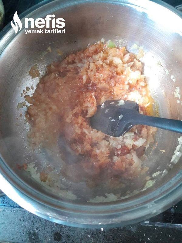 - Kavurduktan çabucak sonra salçayı ekleyip karıştırıyoruz.