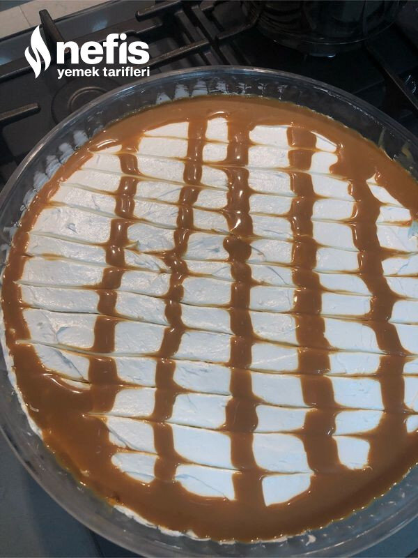 - En son; kekimizin üzerine kremşantiyi güzelce dağıtıyoruz akabinde karamel büsbütün soğuduktan sonra da onu da dağıtıyoruz. Her şey soğuk olmalı ki birbirlerini eritmesinler!
