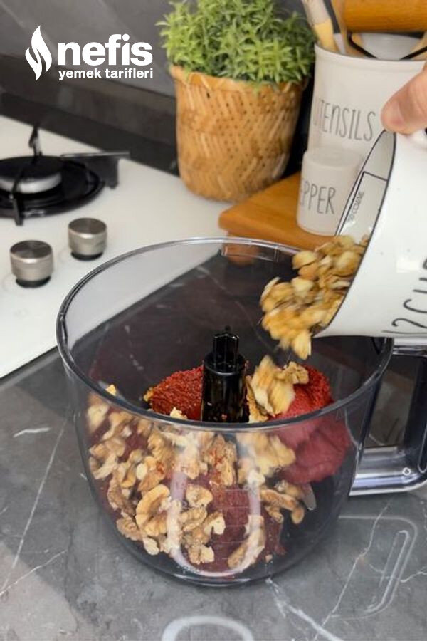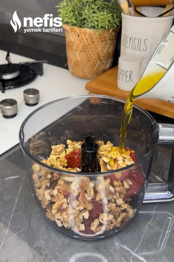 - Hazırlamış olduğumuz acukamızı servis tabağına alalım ve üzerine bir ölçü zeytin yağ ve ceviz serpiştirelim.