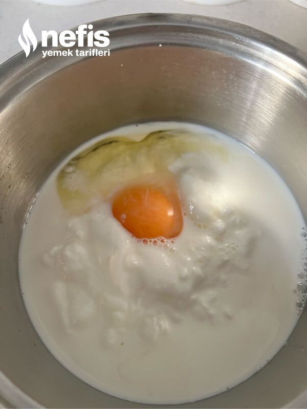 - Tencereye yoğurt, süt, sıvı yağ, yumurtayı ekleyelim.