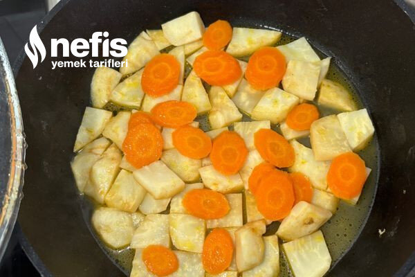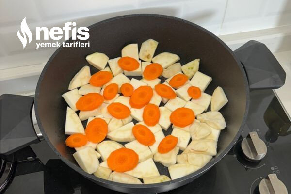 - Tek yapmanız gereken kerevizleri ve havuçları doğrayıp tencereye dizmek.